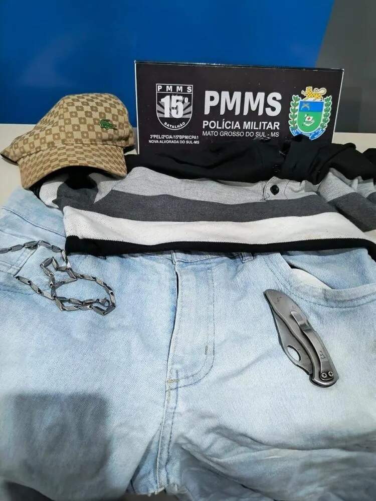Roupa e canivete di suspeito foram apreendidos pela polícia (Foto: Divulgação | PMMS)