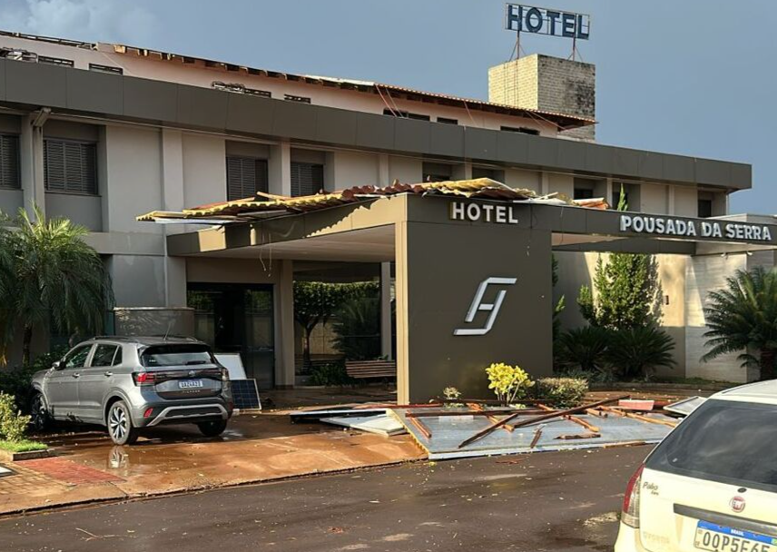 O temporal também provocou destelhamento de residências. Ventos arremessaram objetos contra telhados e fachadas. A reportagem do portal Tudo do MS registrou danos na fachada do Hotel Pousada da Serra e em uma casa em frente ao local.