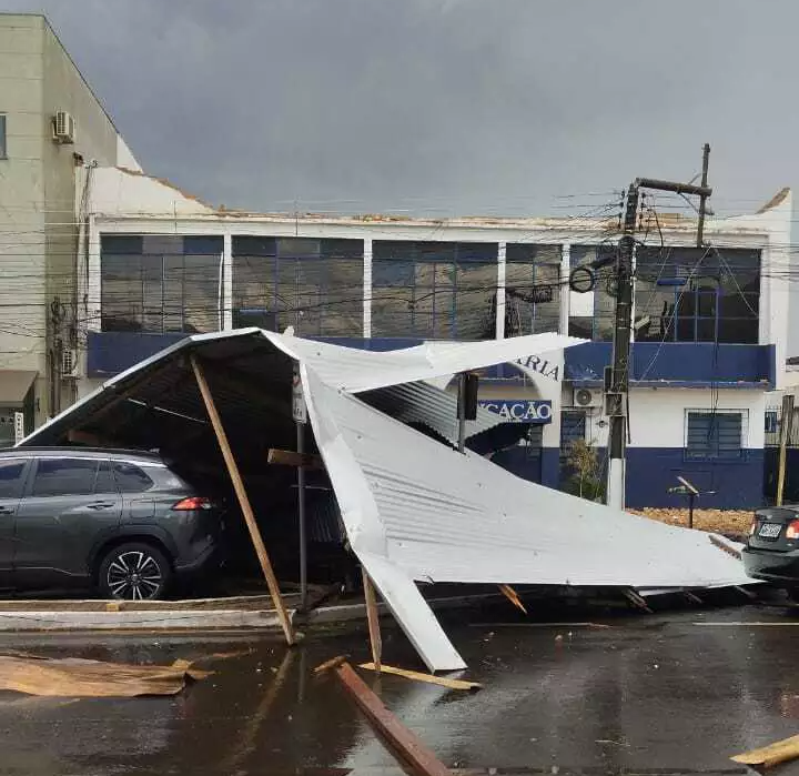 O principal estrago na área central ocorreu na Secretaria de Educação. O vento arrancou parte do telhado metálico do prédio, que acabou atingindo a rede elétrica e interrompendo o fornecimento de energia. Um veículo que estava estacionado nas proximidades também foi atingido.