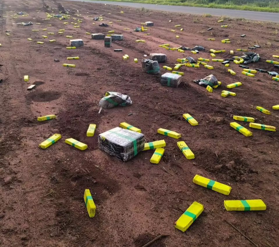 A Amarok, de cor prata, com placas falsas, estava destruída e presa a fios de cerca após despencar de um barranco. No interior do veículo também havia grande quantidade da droga. A contagem realizada posteriormente totalizou 65 fardos e centenas de tabletes, somando mais de 1,6 tonelada.