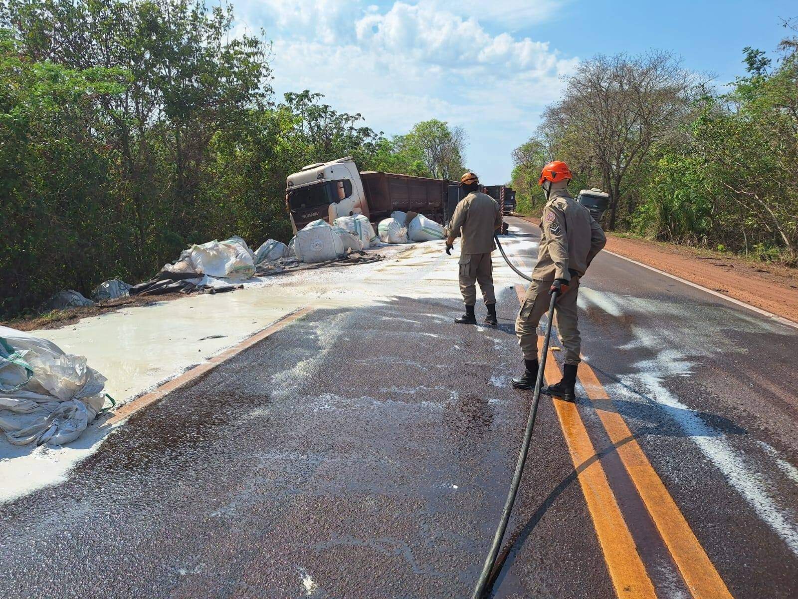 Apesar do impacto e da gravidade do acidente, ninguém ficou ferido. O Corpo de Bombeiros de Miranda foi acionado para atuar na ocorrência e trabalha na liberação da via com segurança. Ainda não há informações sobre registro de congestionamento.