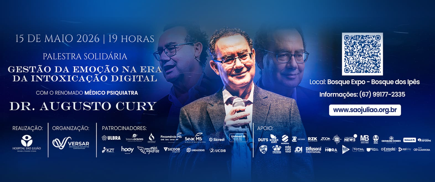 Campo Grande recebe, no dia 15 de maio, uma palestra beneficente com o psiquiatra e escritor Augusto Cury, com renda totalmente revertida ao Hospital São Julião. O evento será às 19h, no Bosque Expo, e surge em um momento em que a instituição precisa de apoio para seguir atendendo.
