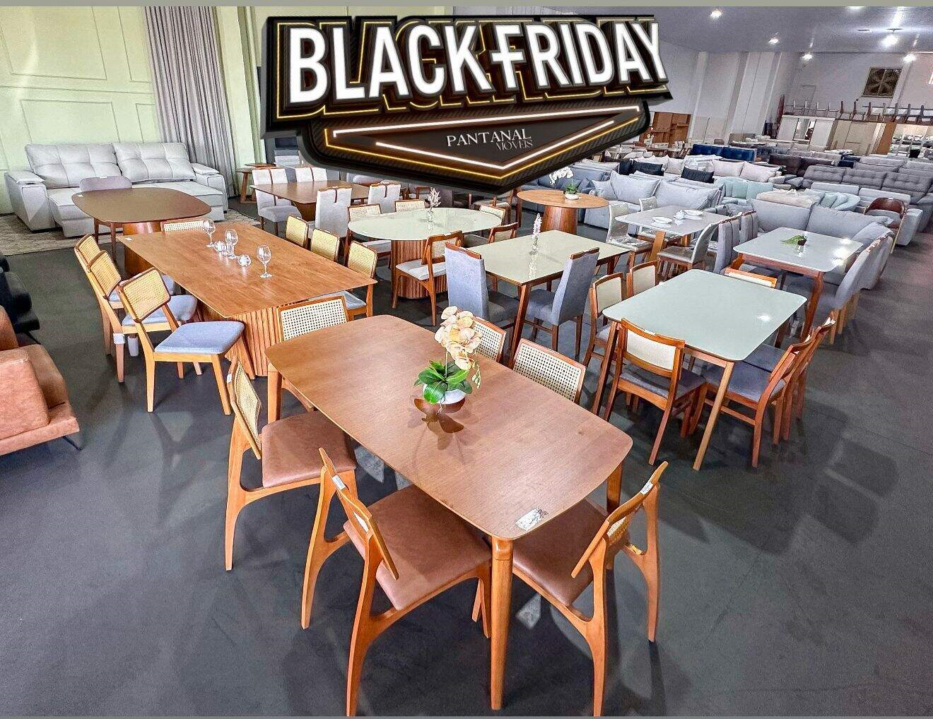 A ação de Black Friday atinge boa parte do catálogo. Há descontos de até 50% em móveis como cama, armário, guarda-roupa e mesa. Os conjuntos de mesa entram na onda promocional com valores a partir de 12 parcelas de R$ 149, reforçando a estratégia da loja de atender desde quem busca economia imediata até quem mira móveis de padrão mais alto. A equipe destaca que a variedade em mesas e sofás é a maior do Mato Grosso do Sul.
