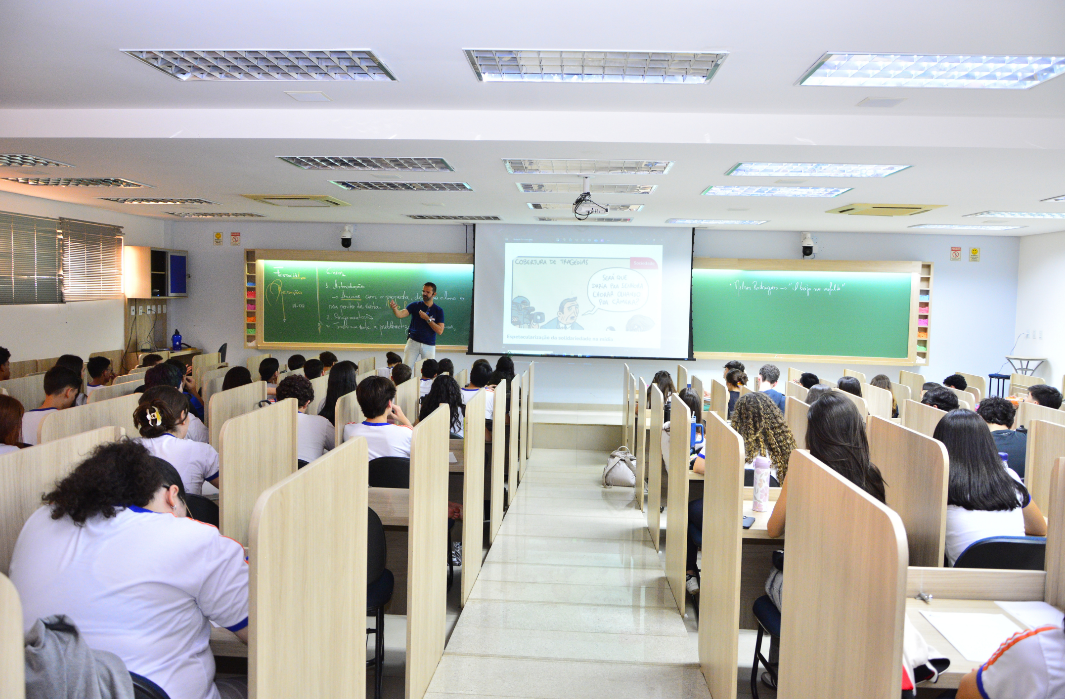 - Aulas profundas e material próprio: Com aulas de duração estendida (01h30min), os professores conseguem aprofundar conteúdos complexos. Além disso, o corpo docente participa ativamente da elaboração do material didático pela editora própria, garantindo total sintonia entre o que é ensinado e o que é cobrado nos vestibulares.
