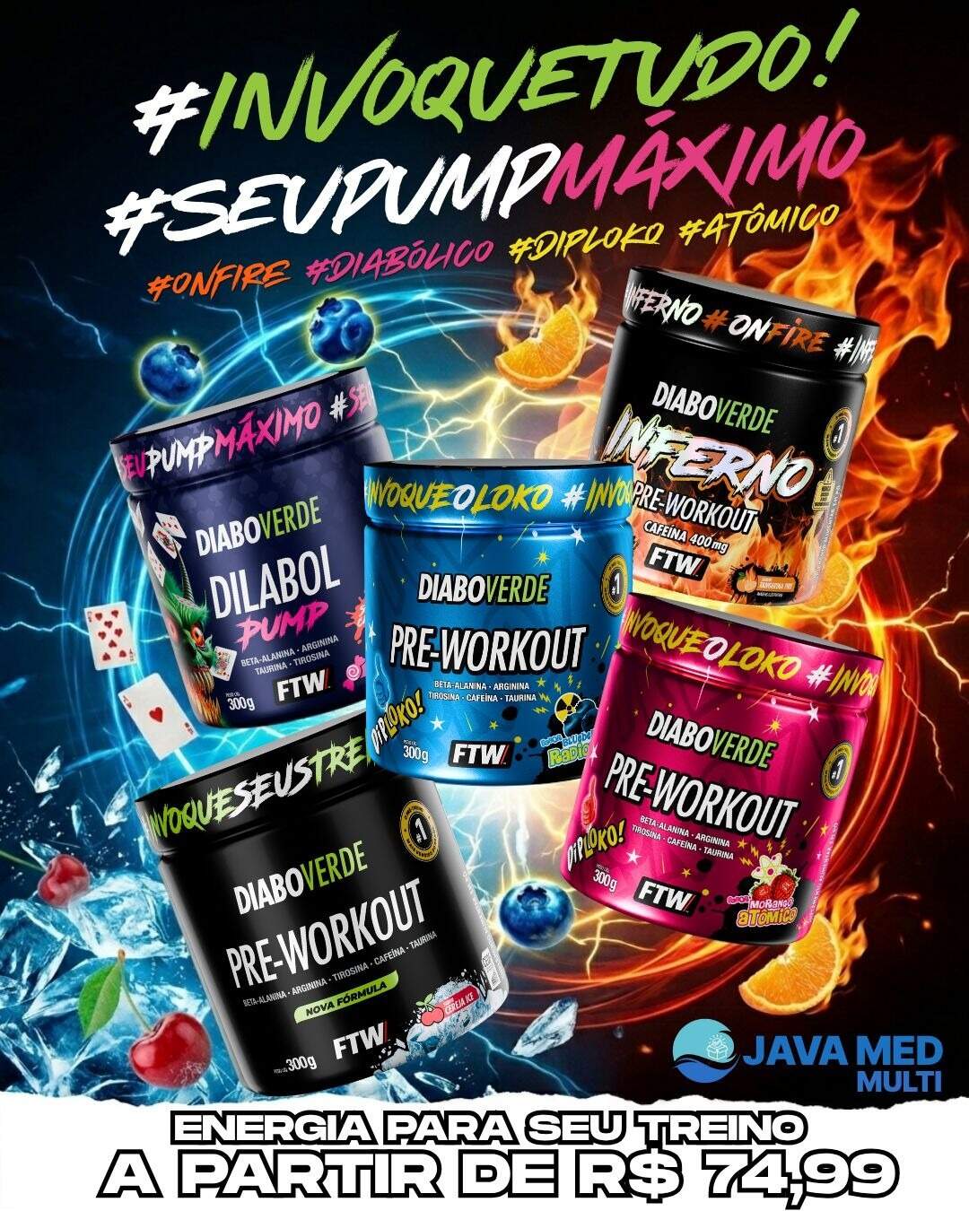 - Pré-treino Diabo Verde (300g): de R$ 95 por R$ 74,99