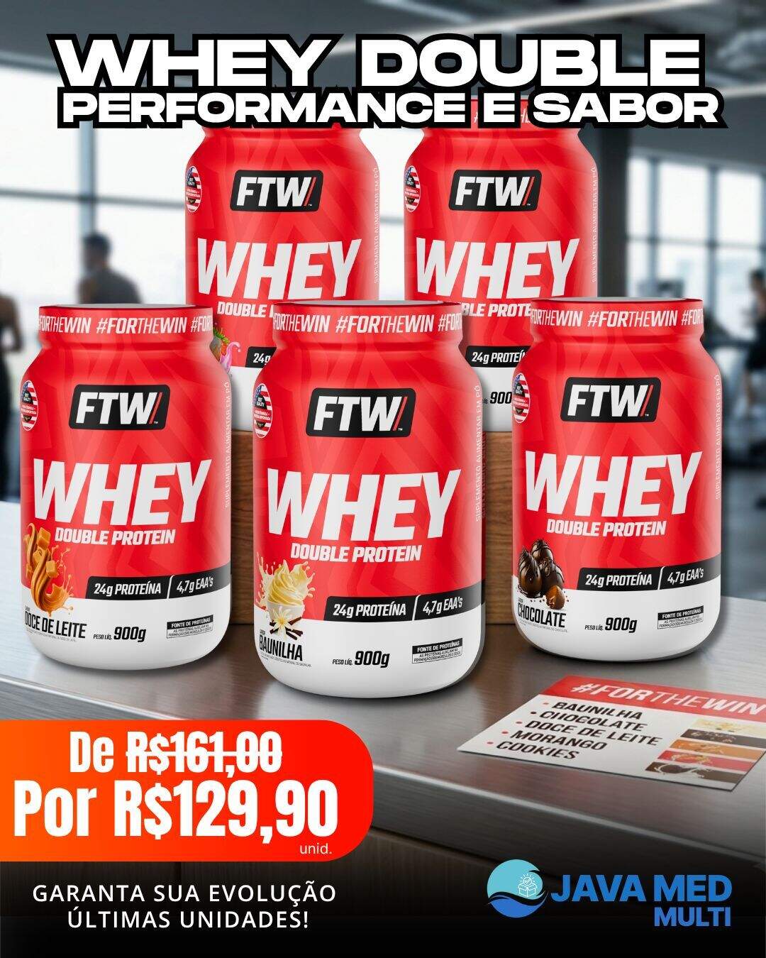 - Whey Double (900g): de R$ 161 por R$ 129,90