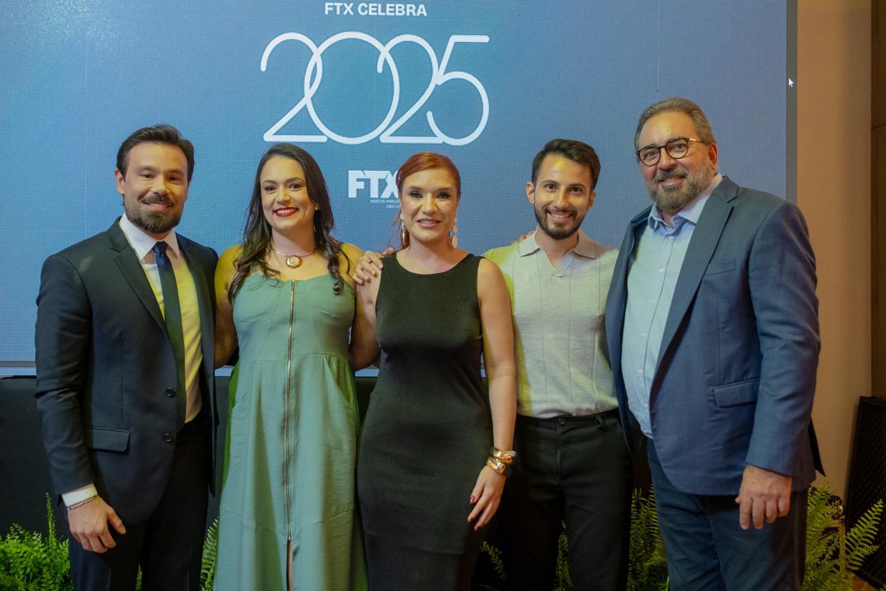 Thiago Normando, Sthefânia Felix, Tiéli Fernandes, Guilherme Meireles, Fernando Moya, Gestão Comercial no FTX Celebra 2025 - evento de comemoração dos resultados do ano. (Foto Divulgação)