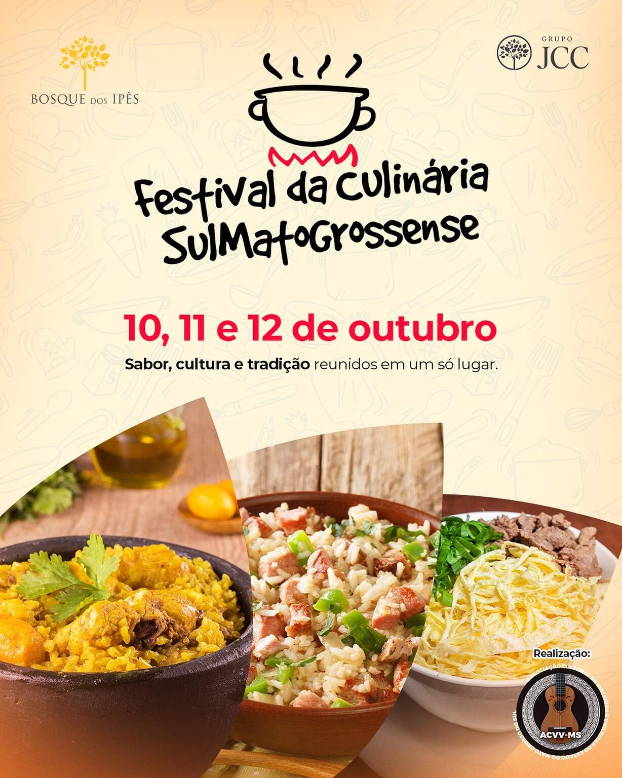 Organizado pela Associação de Culinária e Valorização da Vida do MS (ACVV-MS) em parceria com o Shopping Bosque dos Ipês, o festival tem como objetivo celebrar a diversidade cultural do Estado por meio da comida, da arte e da convivência.