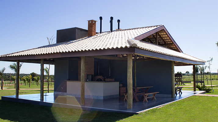 • Espaços gourmet com churrasqueira e fogão à lenha