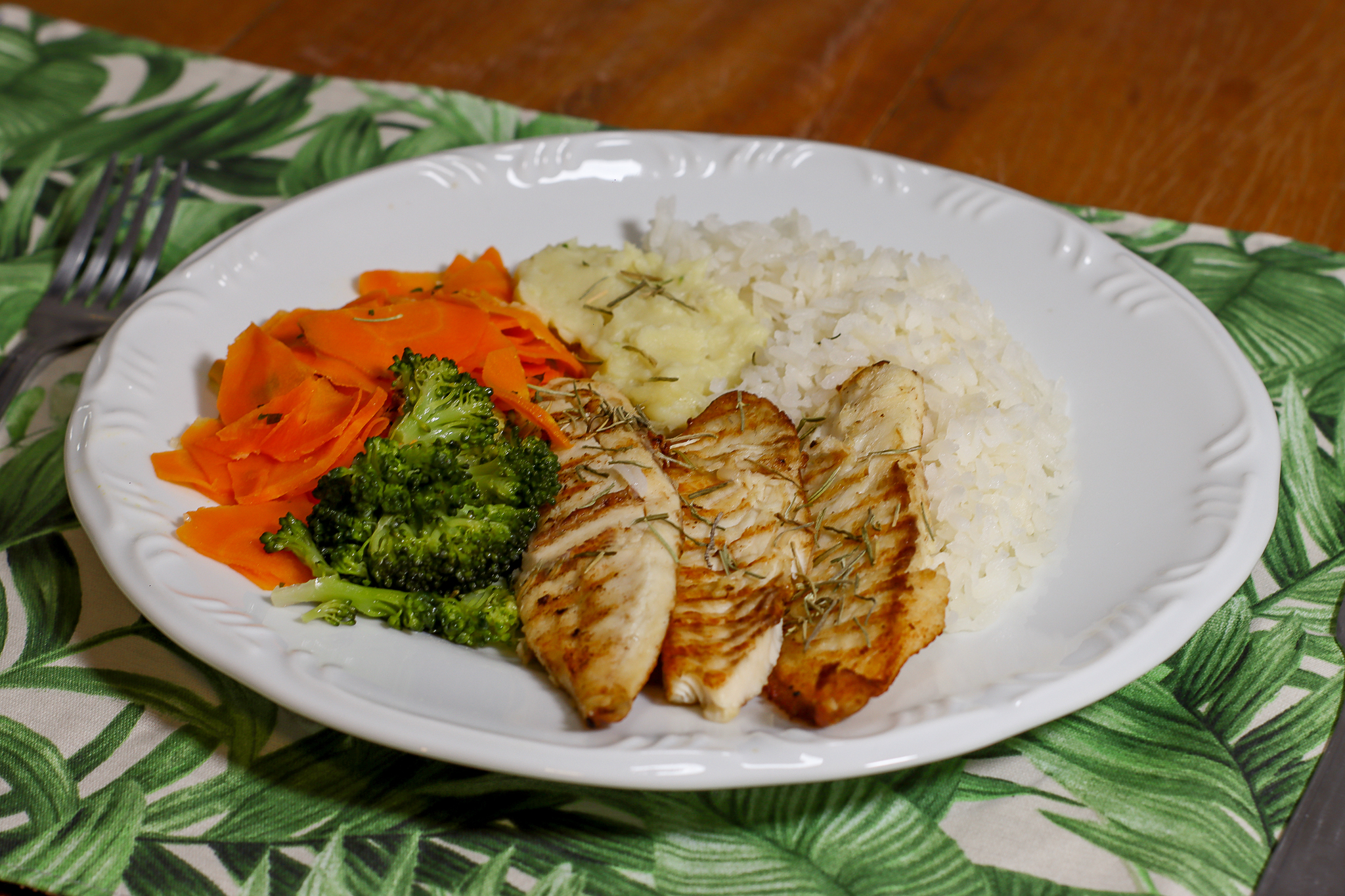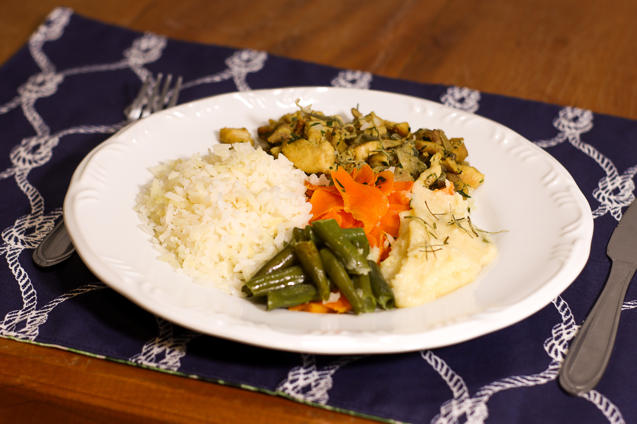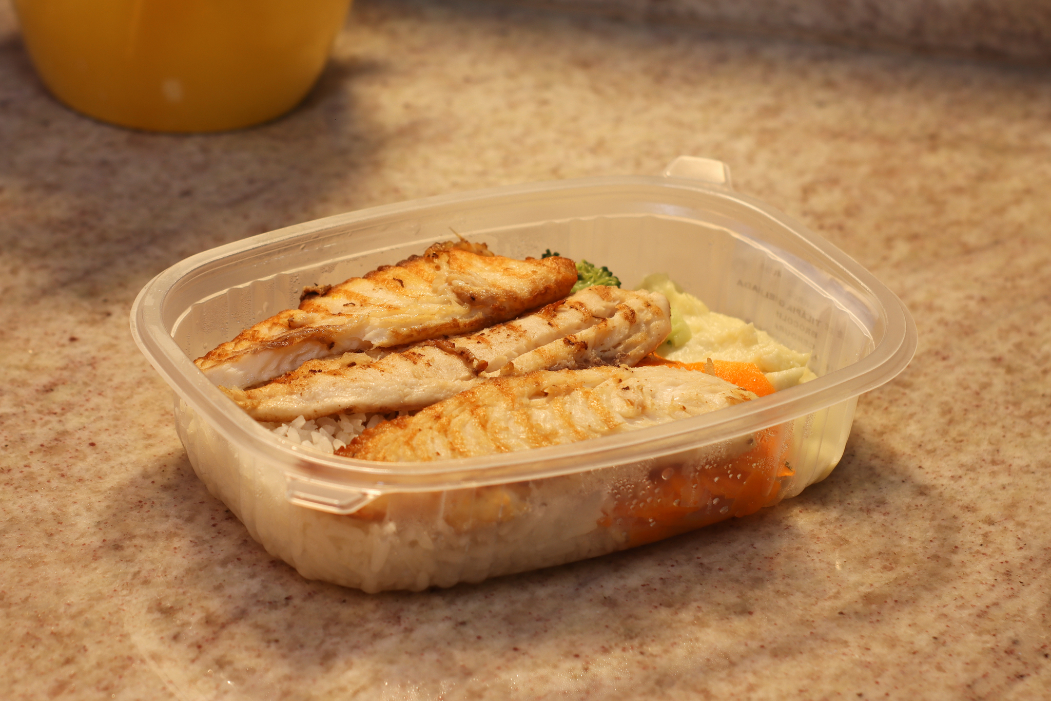 O cardápio é variado e atende diferentes preferências. Entre as opções estão filé de frango grelhado com arroz, purê de batata-doce, brócolis e cenoura; panqueca de frango ao molho sugo; strogonoff de frango; isca de frango com purê de kabotian e lentilha; além de pratos com carne, como bife acebolado, almôndegas, carne de panela e carne moída. Para quem prefere peixe, há filé de tilápia grelhado em diferentes combinações de acompanhamentos.