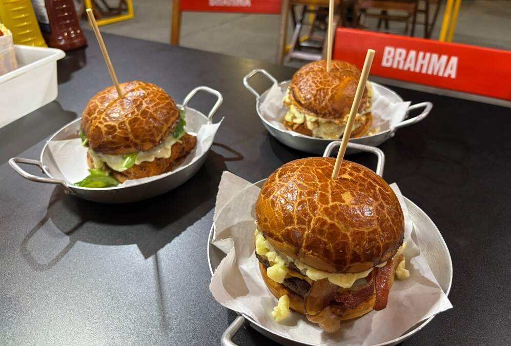 Hoje, o menu é uma vitrine de criatividade. Tem o Monster Bacon, com pão premium, bacon crocante e dois hambúrgueres; o Fabuloso, com queijo empanado e cebola crispy; e o Caipira Burger, que combina brioche, geleia de pimenta, queijo empanado e rúcula. Para quem prefere o clássico, o Baguncinha sai por R$ 19,99 de segunda a quinta, e o chopp Brahma custa R$ 9,99 a noite toda.