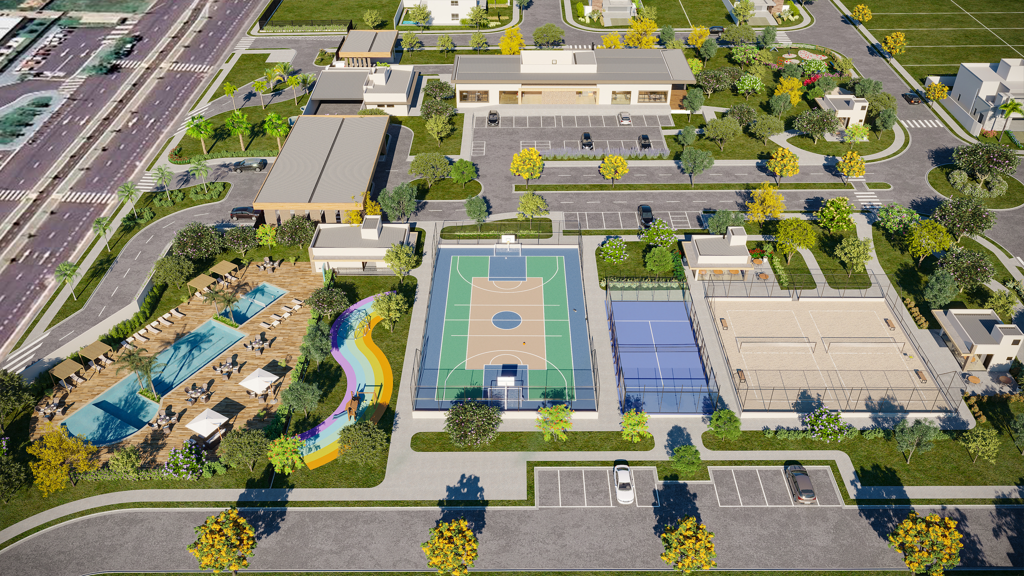 Com a conclusão das obras subterrâneas, inicia-se então a fase mais visível do projeto: pavimentação asfáltica, prevista para março de 2026, seguida pela construção das áreas de lazer e da portaria. O projeto grandioso contempla piscina social, de biribol, playground, quadra poliesportiva, quadra de padel, quadras de areia, espaços gourmet, pet place, espaços para piquenique, salão de festas, brinquedoteca, academia, espaço delivery, pista de corrida, entre outros.