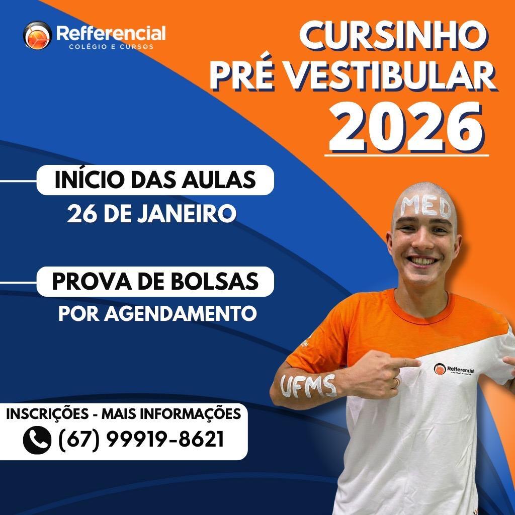 Inscrições e contato - O coordenador-geral do cursinho preparatório do Colégio Refferencial, Edílson Soares da Silveira, está à disposição para informações e inscrições. O contato pode ser feito pelo WhatsApp (67) 99919-8621 (Clique aqui) ou pelo telefone (67) 3043-0109.
