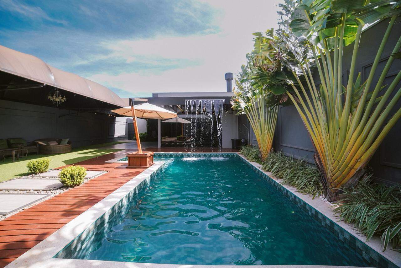 Entre os diferenciais que chamam atenção está a piscina aquecida com cascata, que se tornou um dos pontos mais fotografados do local. O ambiente principal é climatizado, garantindo conforto mesmo em dias mais quentes, e toda a área foi pensada para facilitar a realização do evento.
