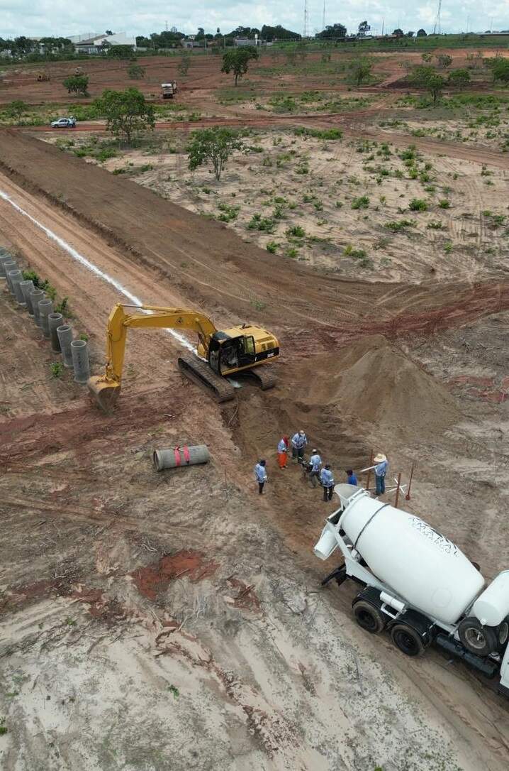 Nesta fase inicial, estão sendo executado os serviços essenciais que estruturam todo o empreendimento. A área já passou pelas etapas de limpeza e corte das vias, permitindo o início da compactação das ruas. Agora, segue em execução a escavação para instalação do sistema de drenagem, com o assentamento das tubulações que garantirão funcionalidade e durabilidade a toda a malha viária do TAJ.