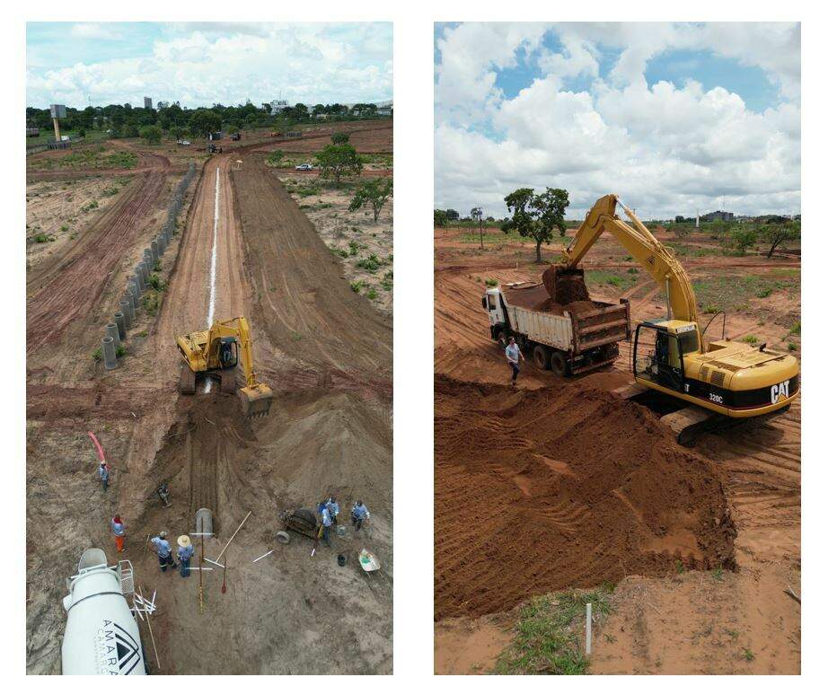 Também está sendo realizado, o nivelamento dos terrenos e das quadras, preparando o solo para receber as três camadas de terraplanagem que antecedem o asfalto.