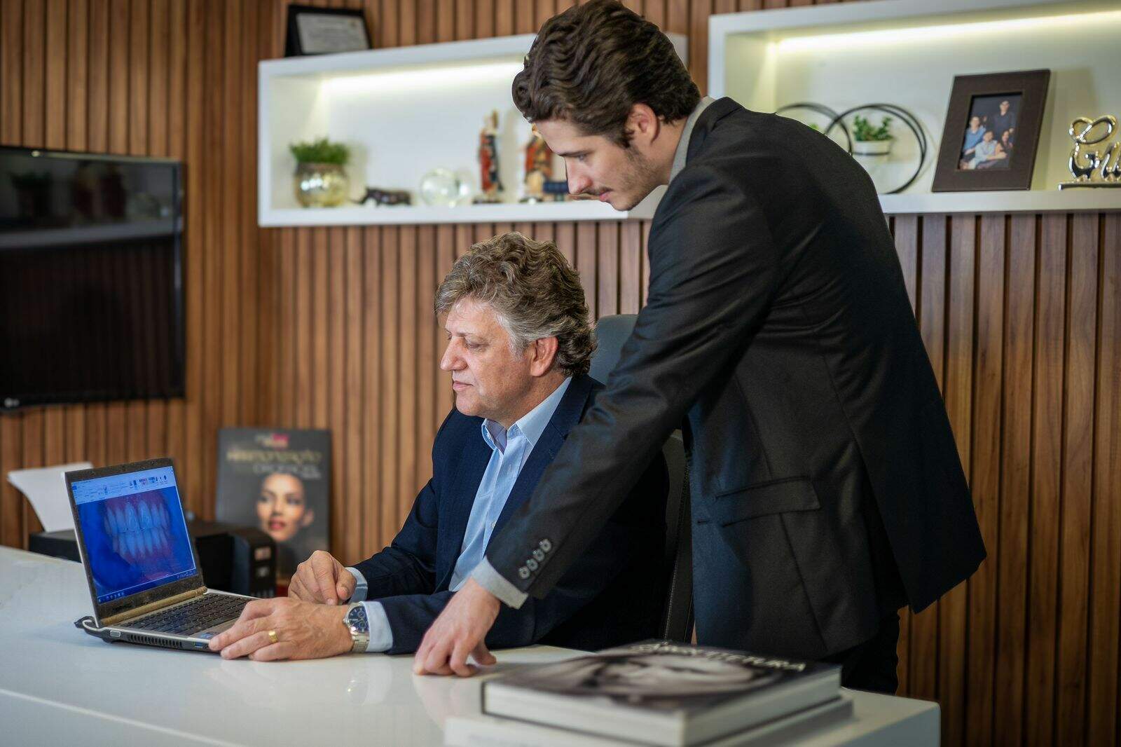 Enquanto Dr. Achilles traz a bagagem de mais de três décadas na odontologia, Dr. Mateus representa a geração que cresceu acompanhando a evolução tecnológica da profissão.