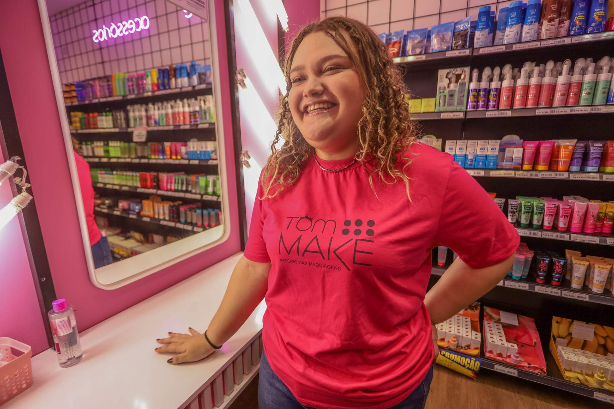 Trajetória de brilho - A história da Tom Make começou há quatro anos no Bairro Nova Lima. De um pequeno espaço voltado à maquiagem acessível, a marca cresceu rapidamente.