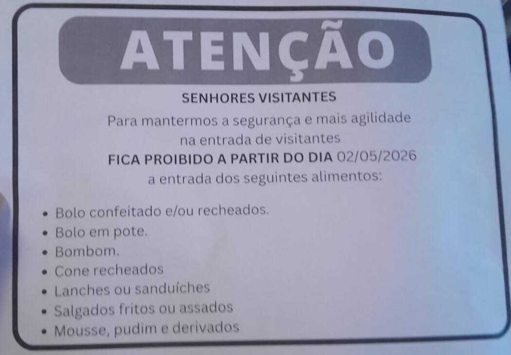 Outro ponto citado é que, quando há necessidade de vistoria física, os alimentos acabam cortados ou danificados, o que costuma gerar insatisfação e conflitos com visitantes. A Agepen informou que bolos simples, sem recheio, continuam permitidos. A entrada de alimentos prontos segue autorizada, respeitando o limite de até 8 quilos por visitante.