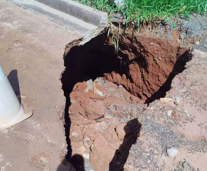 Ainda de acordo com ela, foram os próprios vizinhos que colocaram um cone no local para sinalizar o risco.