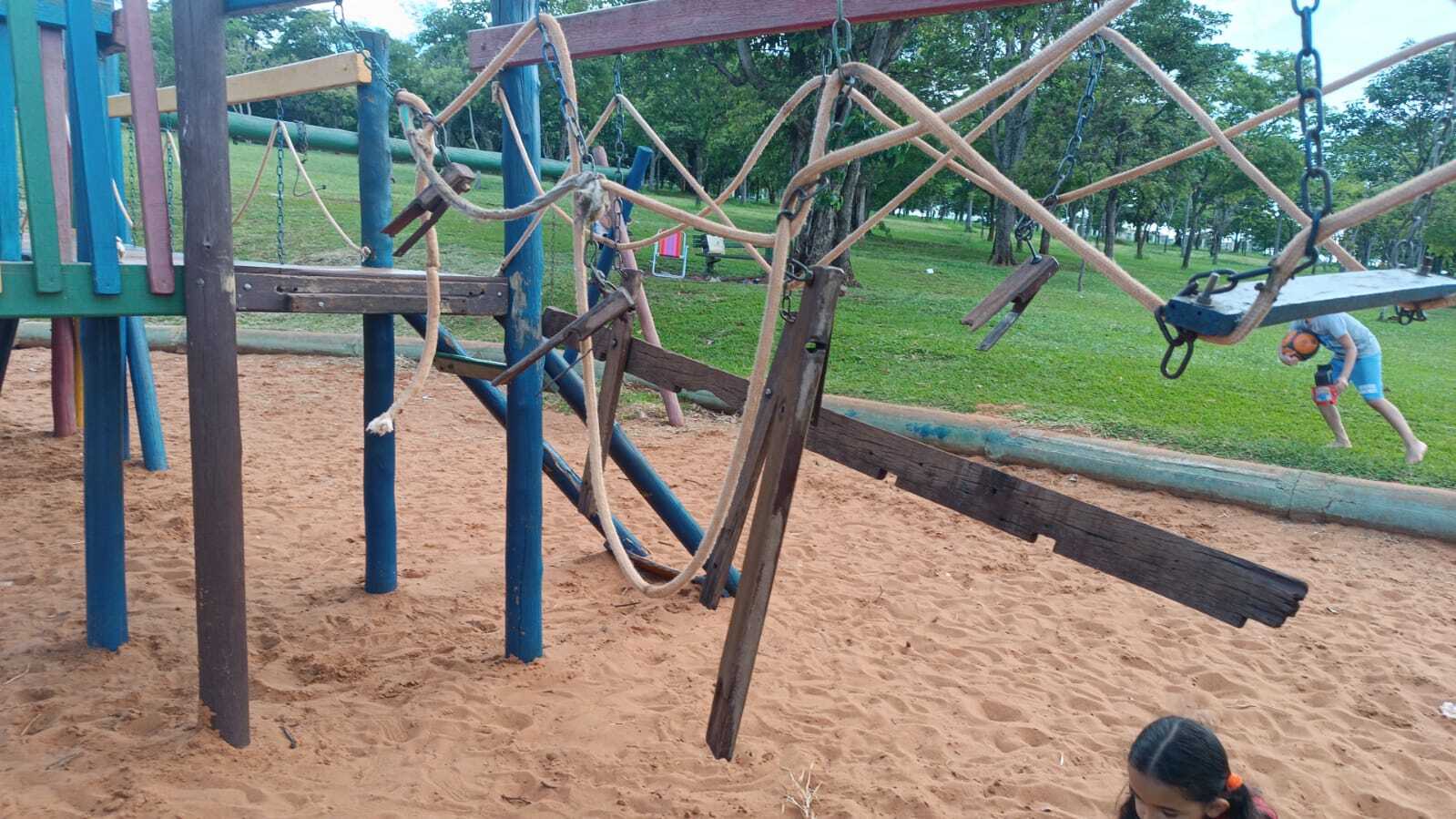 Avó relata perigo em brinquedos quebrados no Parque das Nações Indígenas