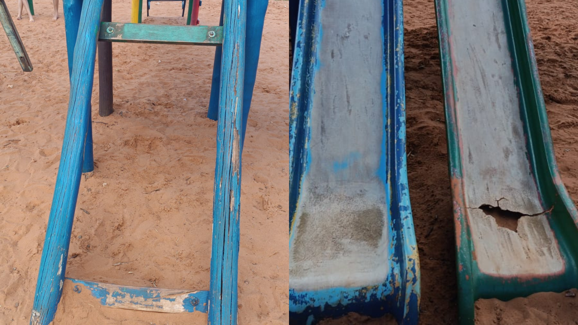 “As crianças não conseguem escorregar porque o acrílico do brinquedo está quebrado. As escadas também estão danificadas. Se houvesse manutenção adequada, isso não aconteceria. Está tudo muito perigoso”, afirmou a servidora.