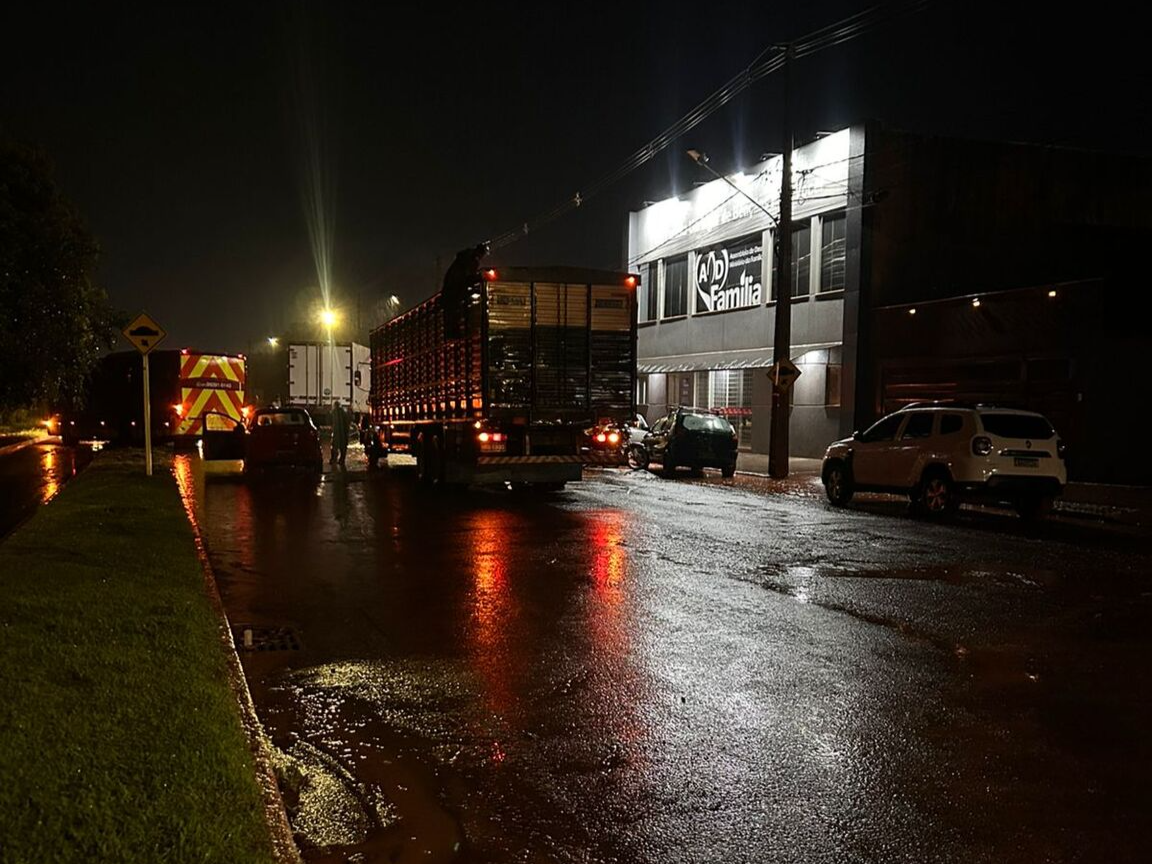 Caminhão, ônibus e carros atolam e travam avenida no Zé Pereira