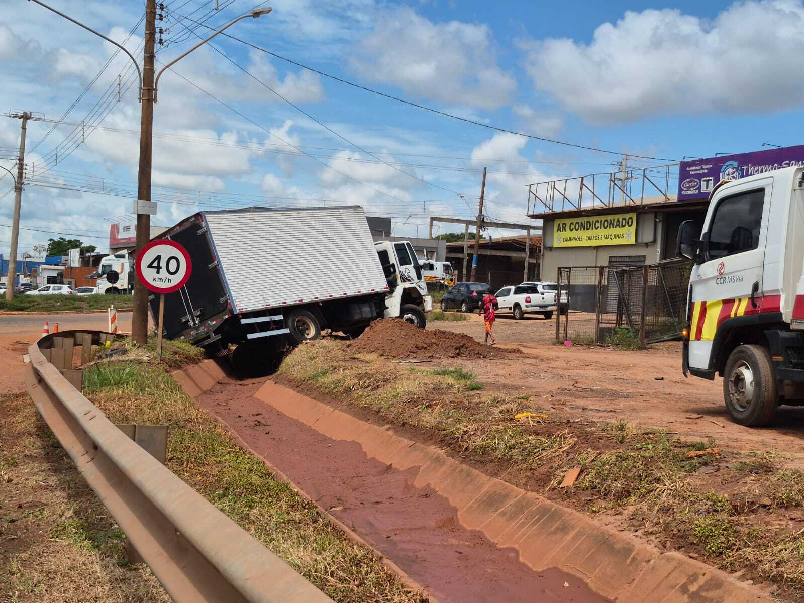 Concessionária justifica canaleta aberta na BR-163 após queda de caminhão-baú