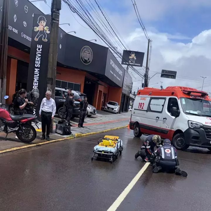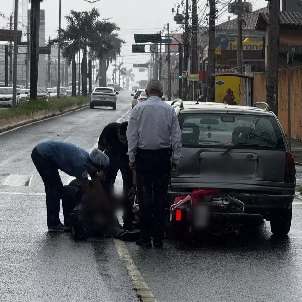 O motociclista é entregador de uma empresa de salgadinhos e seguia para fazer uma entrega. Ele sofreu ferimentos na perna esquerda e foi socorrido pelo Samu (Serviço de Atendimento Móvel de Urgência). Até o momento, não havia confirmação de para qual unidade de saúde ele seria levado.