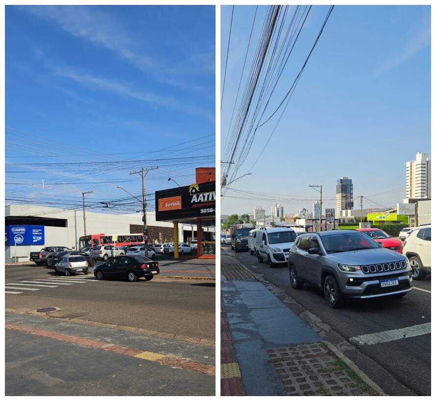 A dona de casa Cristina Fai, 38 anos, enfrentou situação parecida. Ela seguia de carro por aplicativo quando ficou completamente travada no cruzamento da Ceará com a Mato Grosso.