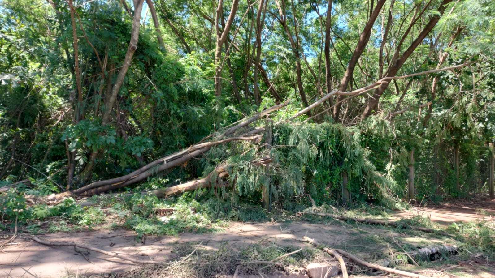 Bruno Henrique da Cruz, empresário que atua na região, relata que diversas árvores cederam para a calçada e parte da rua, derrubando inclusive trechos do alambrado que protege a margem do córrego. “As árvores estão caídas, obstruindo a via e danificando os alambrados. Várias já estão no chão, facilitando a entrada e permanência de usuários no local”, descreve.