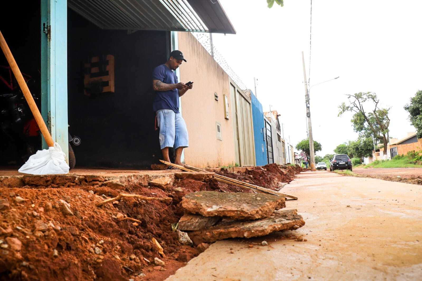 Leandro acredita que a chegada recente do asfalto e da calçada também deve impactar o bolso dos moradores. Mesmo insatisfeito, ele afirma que não vê alternativa a não ser fazer ajustes por conta própria. “Tem que arrumar, não tem como deixar assim. Peguei até uma enxada para tentar ajeitar”, disse.
