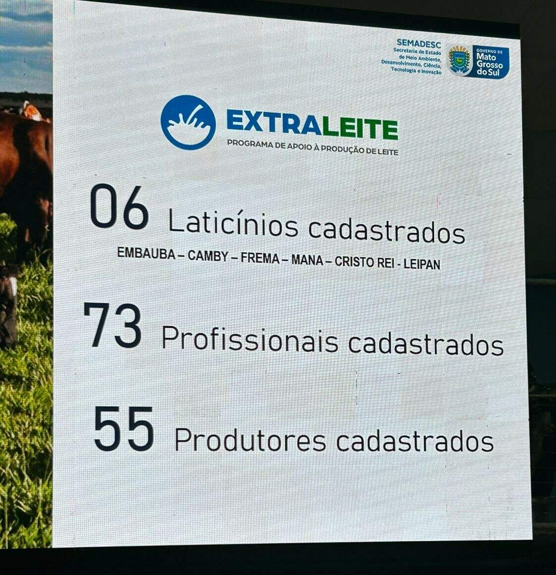 Desde a criação do plano, 53 municípios e cerca de 3,8 mil produtores participaram de 32 negociações de produção de leite, além de receberem assistência técnica por meio do Senar (Serviço Nacional de Aprendizagem Rural) e da Agraer (Agência de Desenvolvimento Agrário e Extensão Rural).