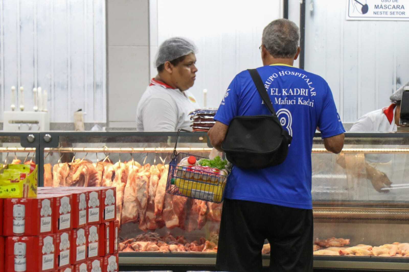 Consumidor sendo atendido por açougueiro em mercado da Capital (Foto: Arquivo/Campo Grande News)