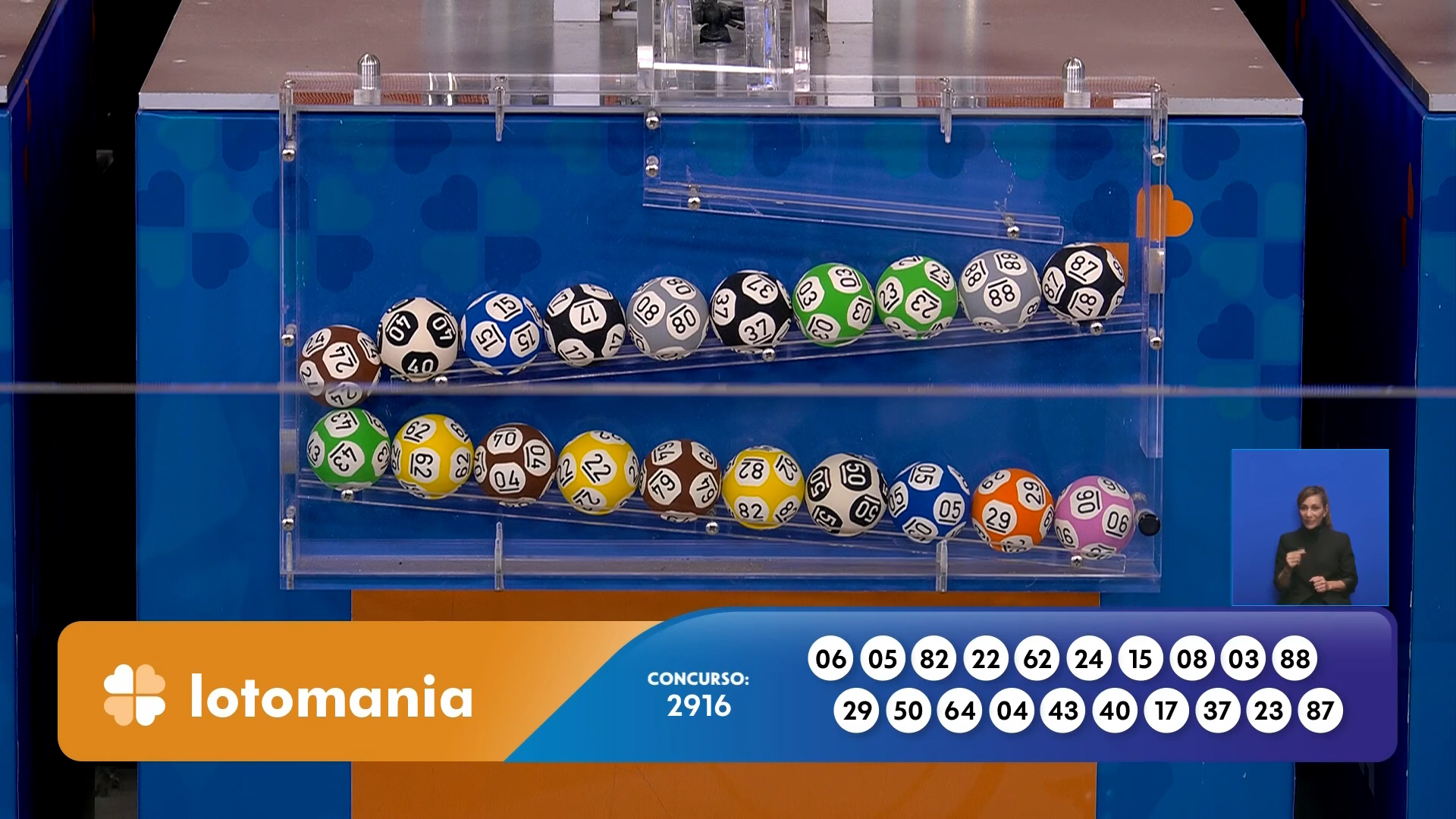 | Lotomania | 2.916 | R$ 974.099,20 | 3, 4, 5, 6, 8, 15, 17, 22, 23, 24, 29, 37, 40, 43, 50, 62, 64, 82, 87, 88 |