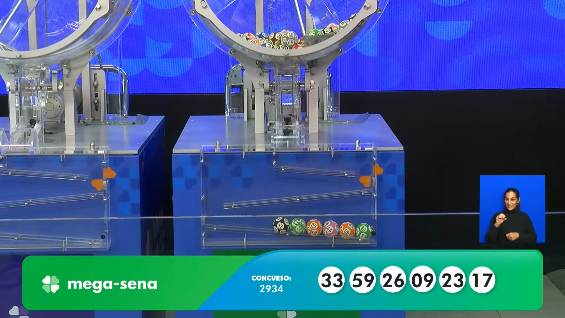 Concurso 2.934 da Mega-Sena teve como dezenas: 9, 17, 23, 26, 33, 59. (Foto: Reprodução/Caixa)