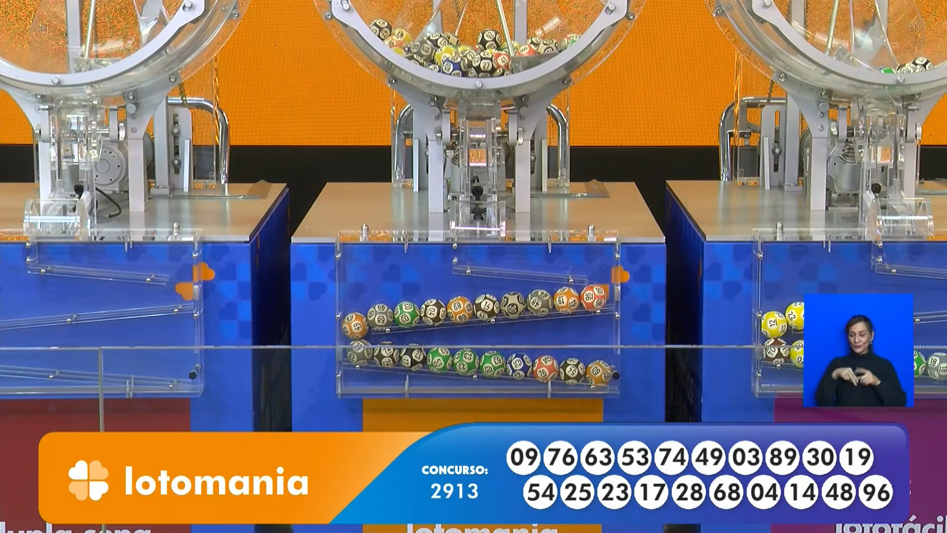 | Lotomania | 2.913 | R$ 1.752.416,20 | 3, 4, 9, 14, 17, 19, 23, 25, 28, 30, 48, 49, 53, 54, 63, 68, 74, 76, 89, 96 |