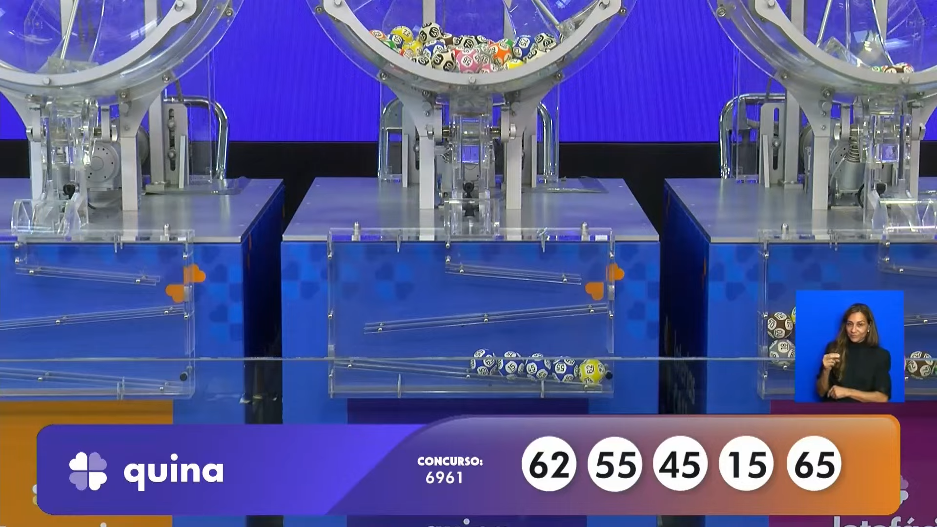 Quina (6.961)R$ 1.201.114,0515, 45, 55, 62, 65