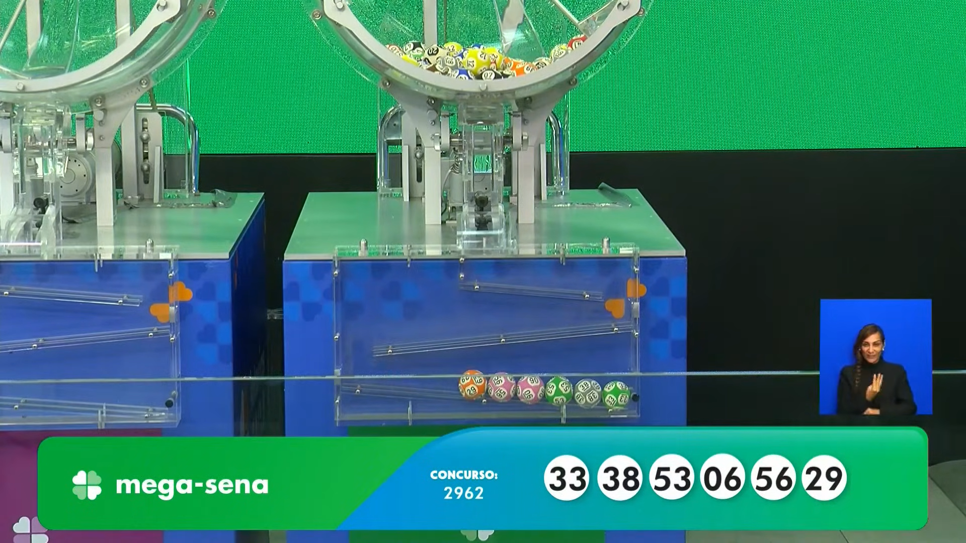 Concurso 2.962 da Mega-Sena teve como dezenas: 6, 29, 33, 38, 53, 56. (Foto: Reprodução/Caixa)