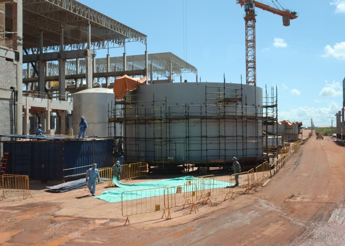 Antes do evento, o gerente executivo de Projetos do Sucuriú, Leonardo Crociati, fez um “tour” com a imprensa, mostrando todo o canteiro de obras. Uma das estruturas que chama a atenção é a chaminé. Uma imensa torre, que chegará a 160 metros de altura, equivalente a um prédio de 40 andares, se destaca no meio do imenso canteiro de obras.