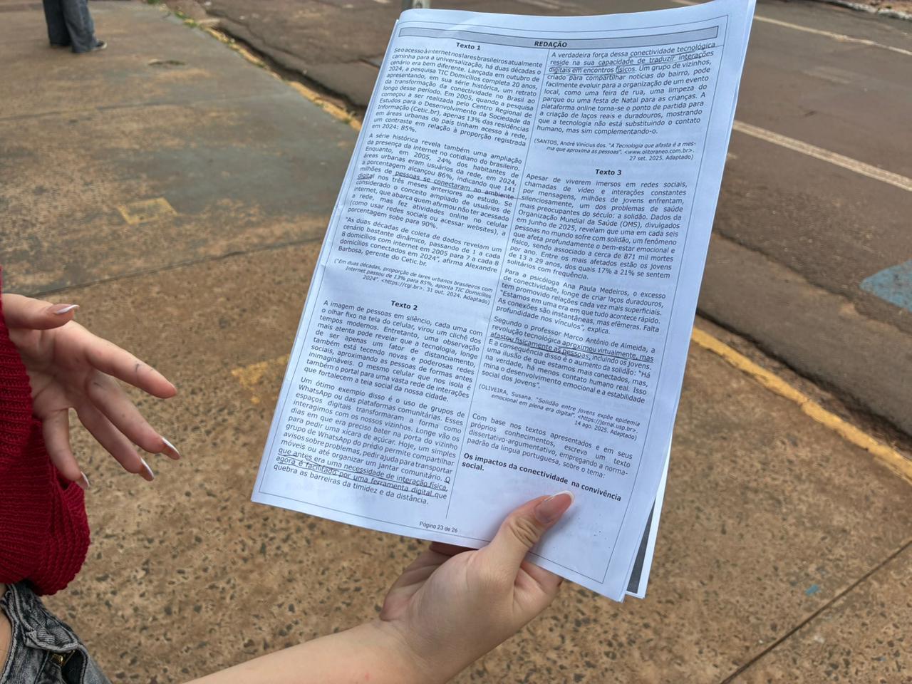 A prova foi aplicada em 7 de dezembro do ano passado, mas os resultados finais foram divulgados ontem (19). O tema da redação foi “Os impactos da conectividade na convivência social”.