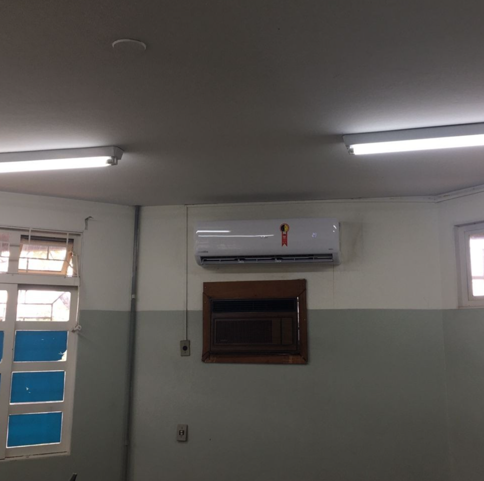 Ar-condicionado instalado em escola da Rede Estadual de Ensino, em 2022 (Foto: Divulgação SED)
