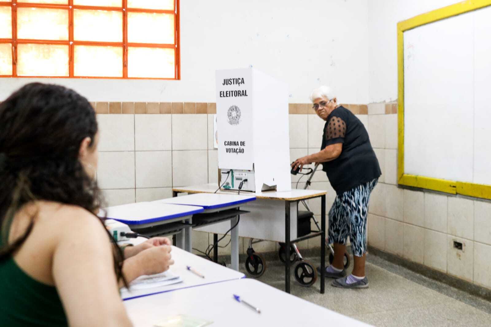 Idosa chegando em cabine de votação nas última eleição municipal (Foto: Henrique Kawaminami/Arquivo)