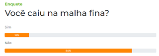 A maioria dos leitores, 84%, informou na enquete do Campo Grande News de quinta-feira (31) que não caiu na malha fina da Receita Federal neste ano. Outros 16% comentaram que "sim".