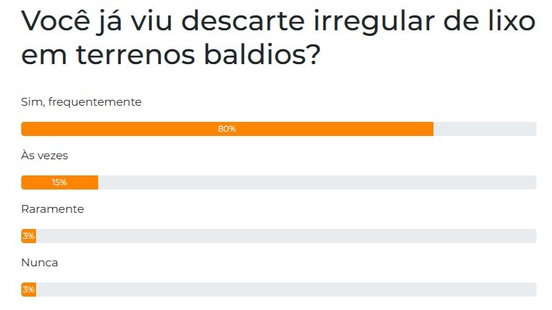 Os dados indicam que o descarte irregular em áreas vazias é uma realidade comum para a maior parte dos leitores que participaram da enquete.