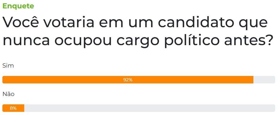 A maioria dos leitores do Campo Grande News afirmou que votaria em novatos na política, enquanto 8% disseram não confiar o voto a estreantes. O resultado é da enquete publicada nesta segunda-feira (27), que quis saber o que pesa mais na decisão do eleitor: a trajetória e a experiência de quem já esteve no poder ou o desejo de mudança representado por quem chega agora.