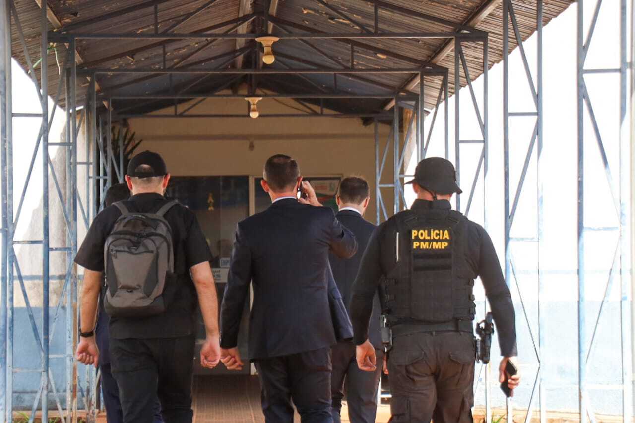 Equipe do Ministério Público durante operação na Prefeitura de Terenos, em 9 de setembro, que resultou na prisão do prefeito Henrique Wancura Budke (Foto: Henrique Kawaminami)