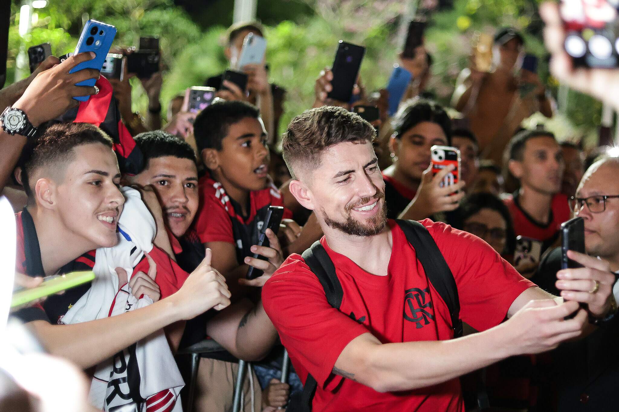 Volante Jorginho registra foto com torcedores do Flamengo (Foto: Gilvan de Souza)