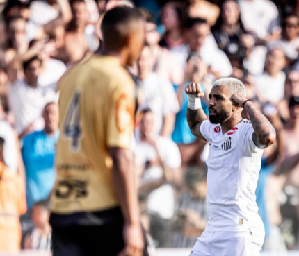 Aos seis minutos, Gabigol empatou a partida após aproveitar rebote dentro da área (Foto: Instagram santosfc)
