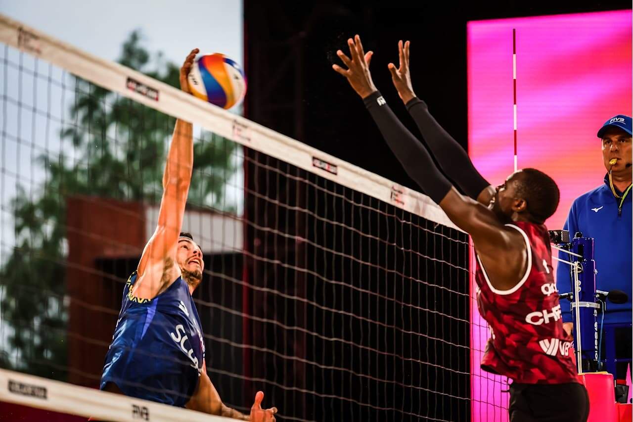 A derrota foi contra a dupla do Catar, Cherif/Ahmed, por 2 sets a 0, com parciais de 21/23 e 20/22.
